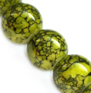 Különleges nagyméretű üveg gyöngy - márványos zöld